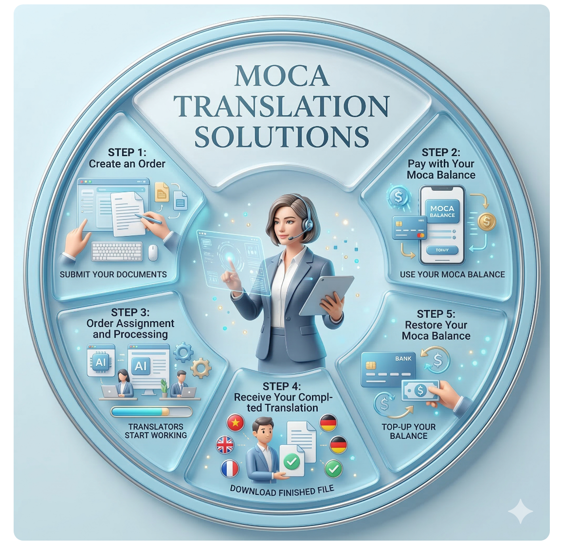 Tìm hiểu quy trình sử dụng Gói Moca trên Mokrica để tạo đơn hàng dịch thuật, thanh toán bằng số dư Moca và nhận bản dịch hoàn chỉnh một cách nhanh chóng và hiệu quả.