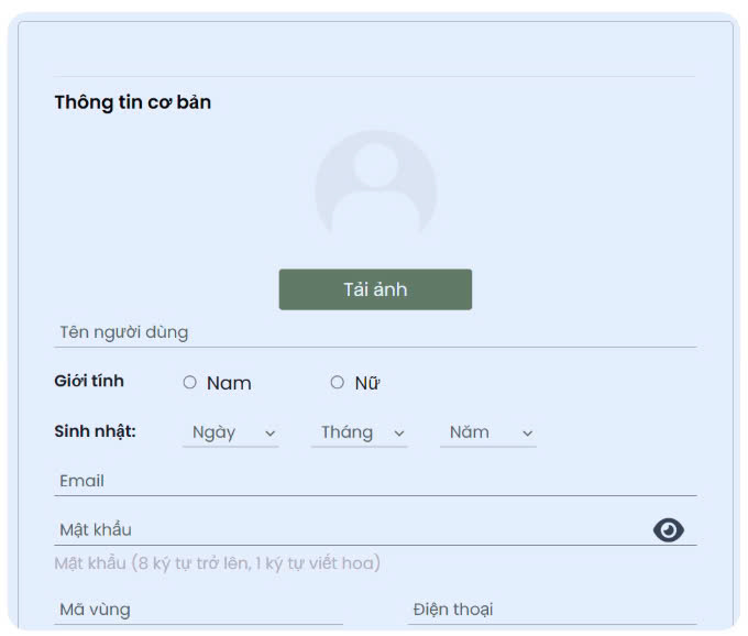 • Điền các thông tin cơ bản của bạn.