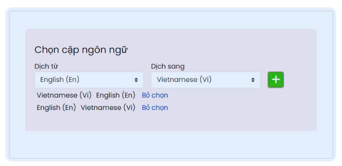 • Chọn các cặp ngôn ngữ bạn có thể dịch