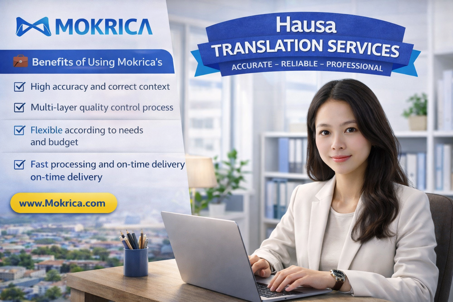 Mokrica cung cấp dịch vụ dịch thuật tiếng Hausa chuyên nghiệp, đáp ứng linh hoạt nhu cầu từ cá nhân đến tổ chức với quy trình minh bạch và chất lượng cao.